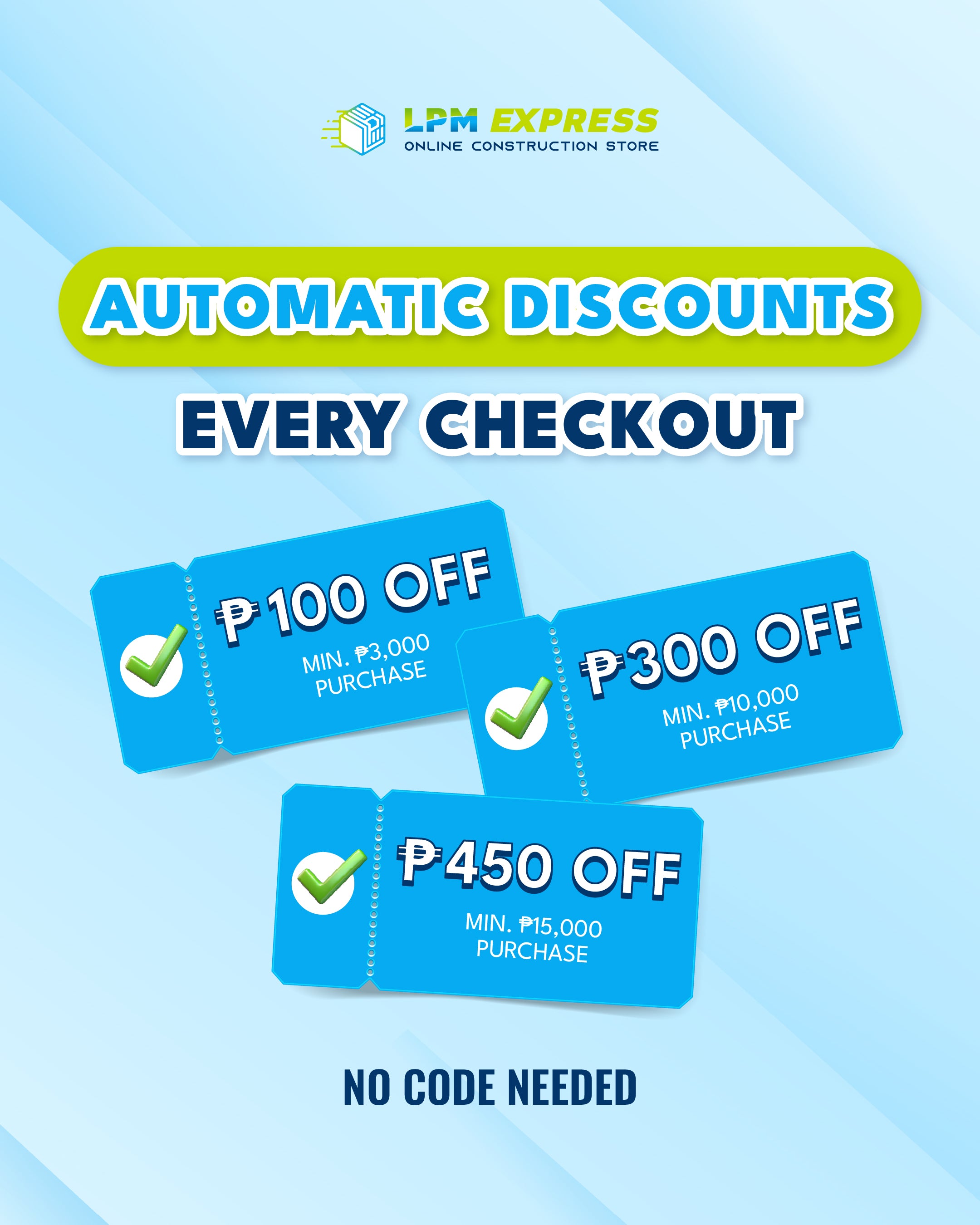 LPM Express is the retail arm of LPM Construction Supply where you can order per piece for your clients or for your DIY projects!